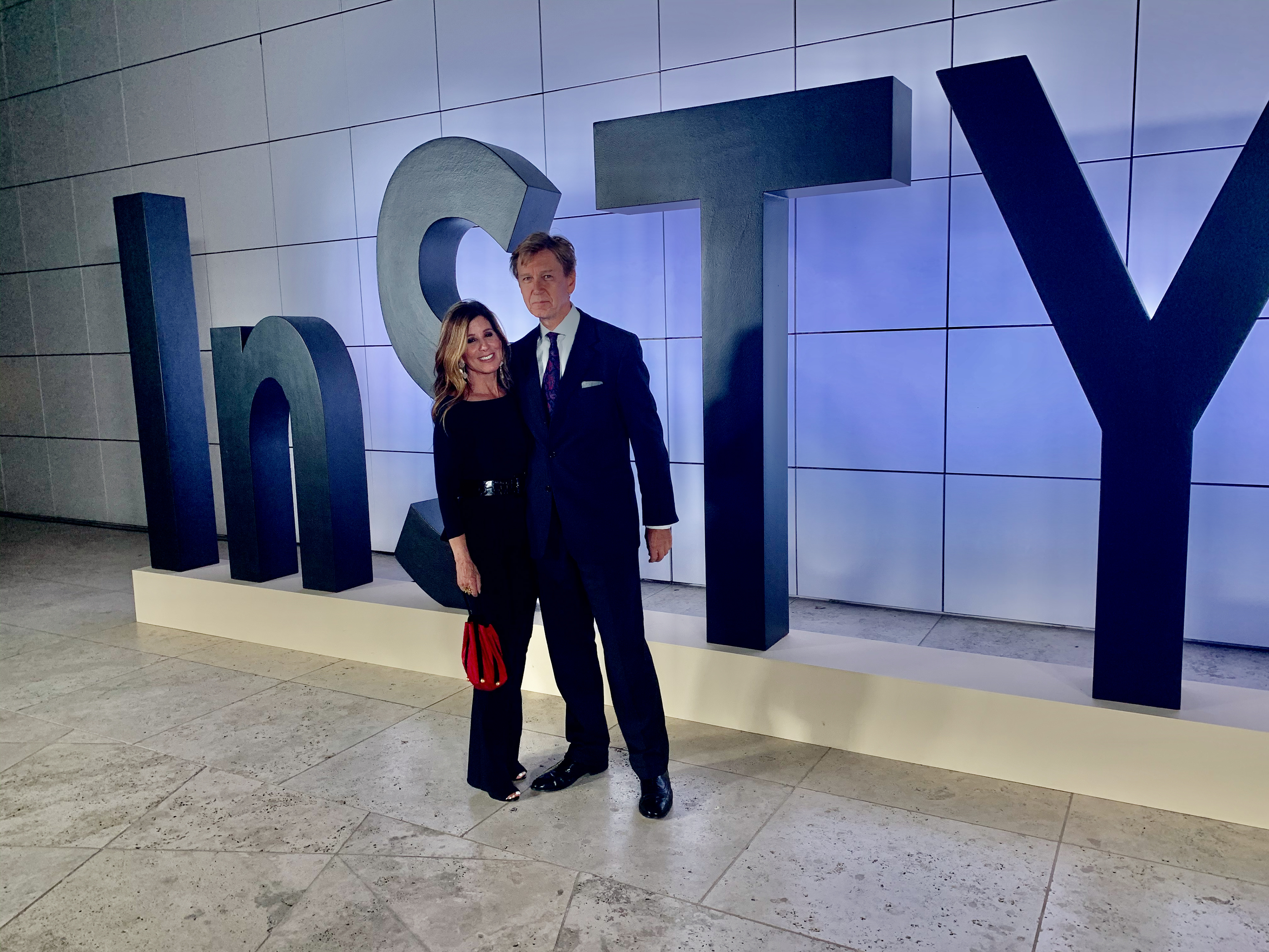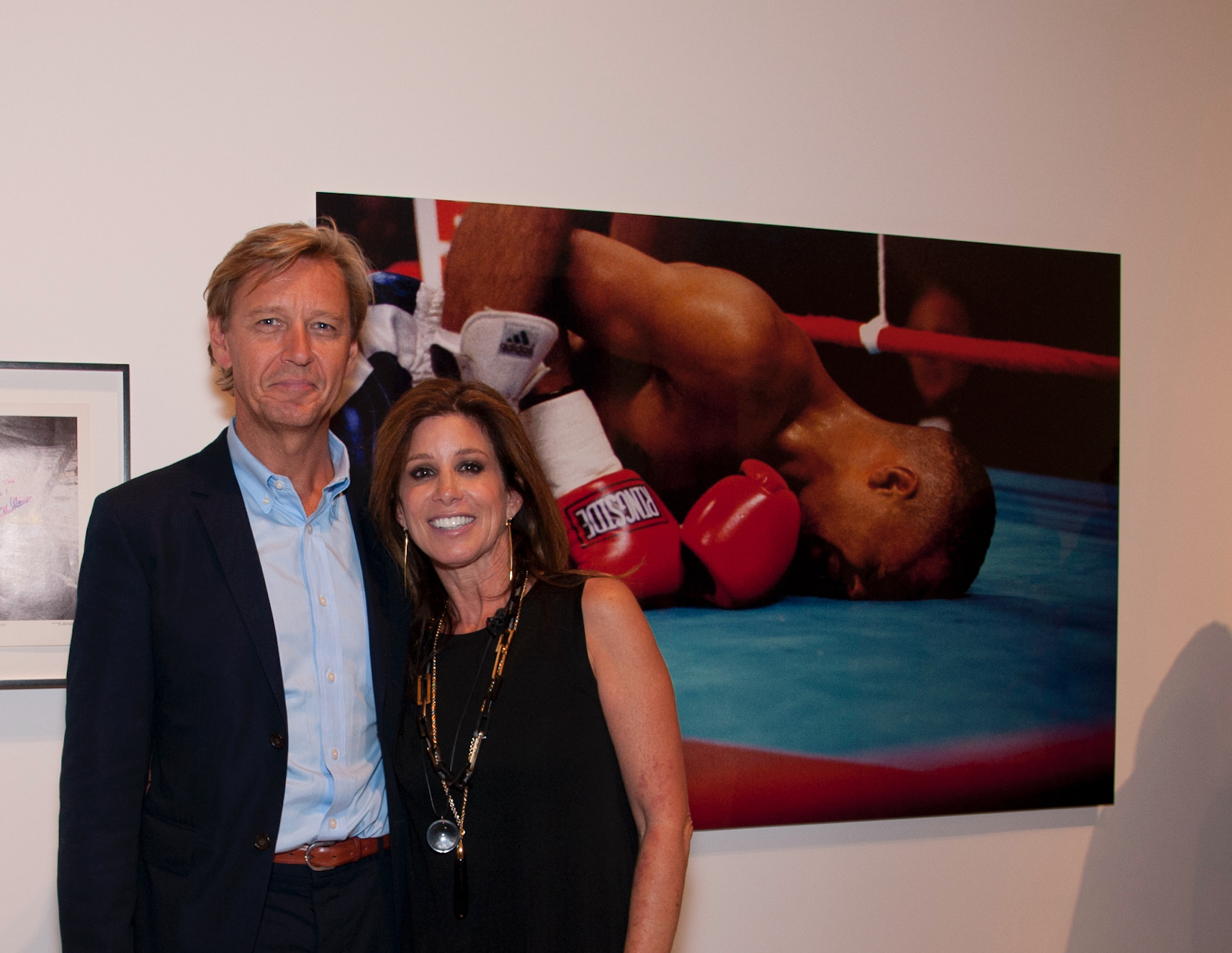 Kathy Suder accompanied by her partner, Timothy Potts, Director of J. Paul Getty Museum, attend "FAME" exhibition at the ESMOA Museum where her work, Get Up! from her KNOCKOUT Series, was exhibited. September, 2013